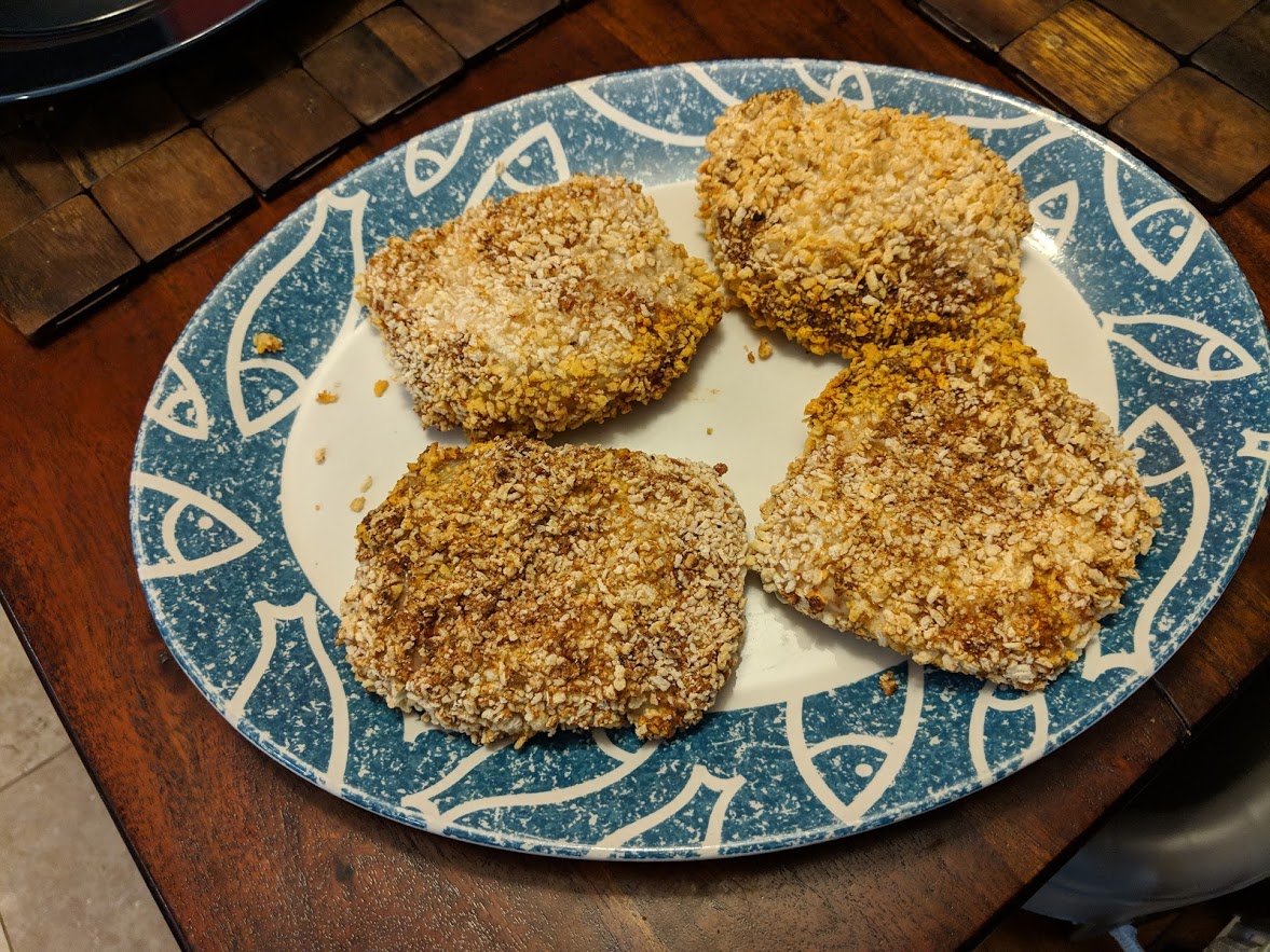 - Coat meat in all sides by pressing firmly directly into the coating mix.